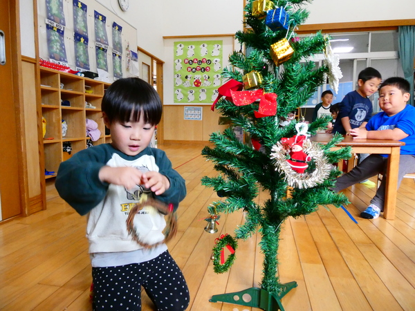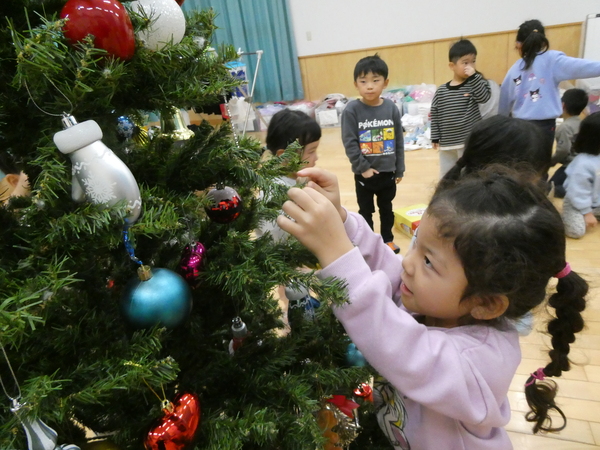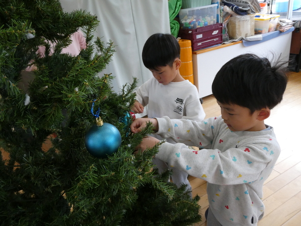 12月8日(月)に、クリスマスツリーの飾りつけをしました。