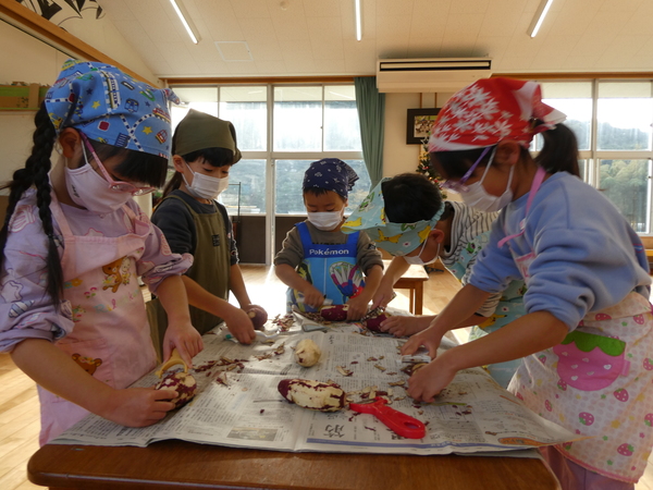 12月10日(水)に、ひまわり組のキリングループさんが、スイートポテト作りに挑戦しました。