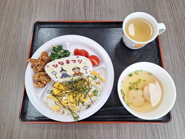 『おひなさまランチ』のちらし寿司や、白酒に見立てたカルピスをいただきました。